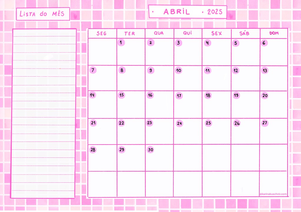 Sobre o calendário: Para imprimir, não esqueçam de configurar para “ajustar à área de impressão”.